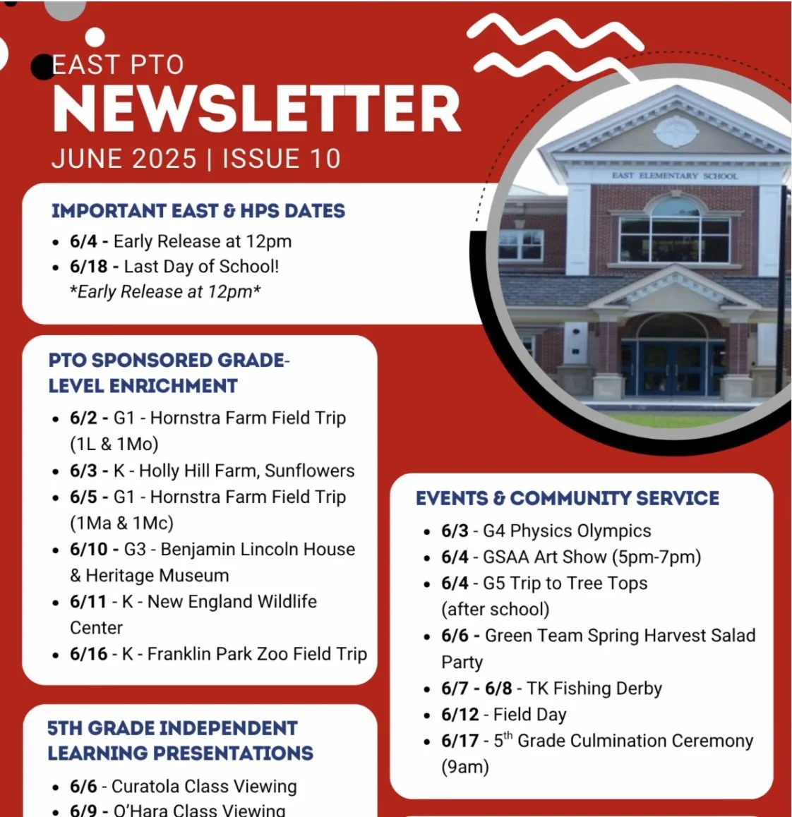 If you have any questions, feel free to reach out to: eastschoolcommunications@gmail.com